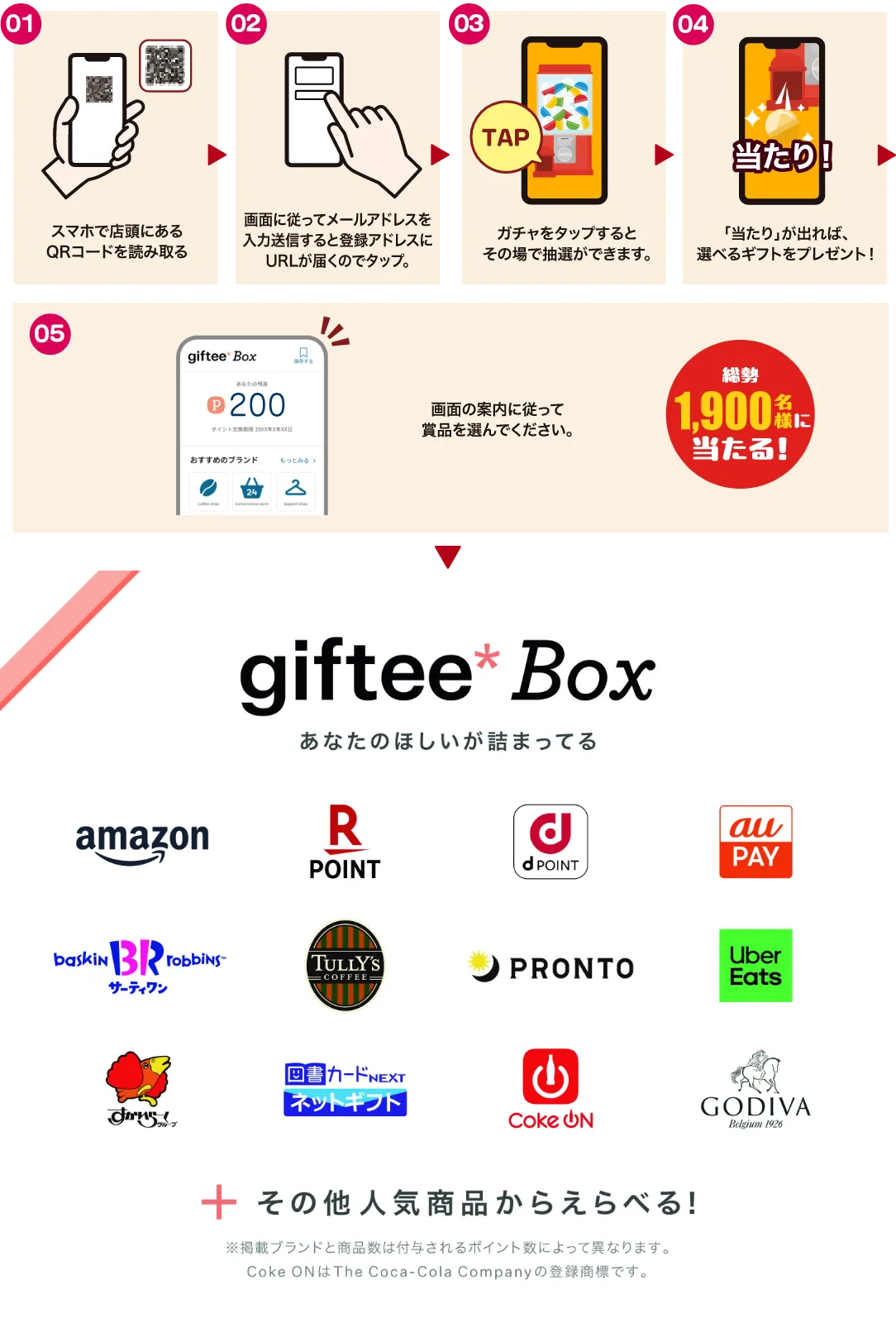 「当たり」が出れば、お好きな商品を自由に選べるギフトをプレゼント!