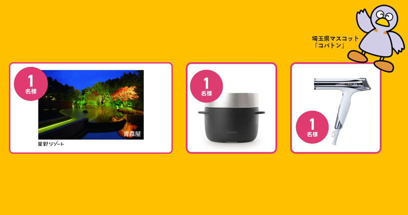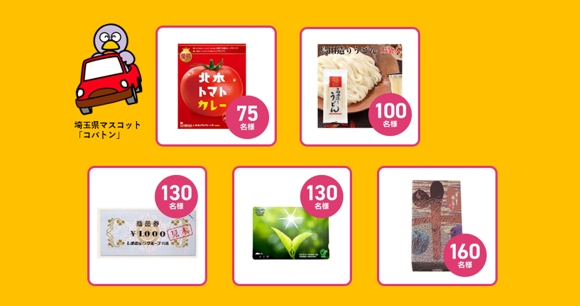 『ヨギボーネックピロー』『狭山茶さやま花七宝』『RDCグループ 商品券2,000円分』