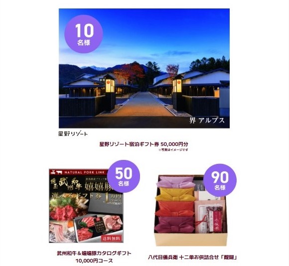 1つ目は「星野リゾート宿泊ギフト券 50,000円分」!